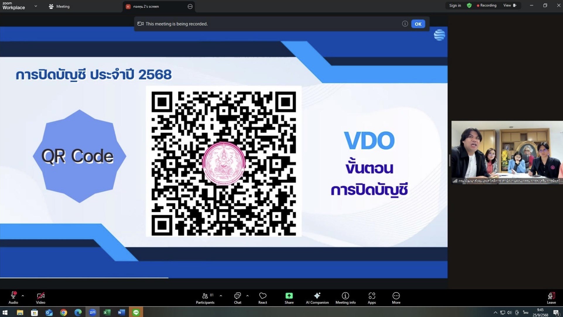 วันพฤหัสบดีที่ 25 กันยายน 2568 เวลา 09.30 น. ณ ห้องประชุม 2 สำนักงานคณะกรรมการส่งเสริมการจัดสวัสดิการสังคมแห่งชาติ กรมพัฒนาสังคมและสวัสดิการ โดยมีนางสาวสิชากาณจ์ ศิไพบุณณากาณจ์ ผู้อำนวยการสำนักงาน ก.ส.ค. เป็นประธานการประชุม และมีผู้ปฏิบัติงานกองทุนฯ เข้าร่วมประชุม จำนวน 67 จังหวัด เพื่อติดตามการดำเนินงานและแลกเปลี่ยนเรียนรู้การทำงานร่วมกัน และเรื่องอื่น ๆ ที่เกี่ยวข้อง ดังนี้