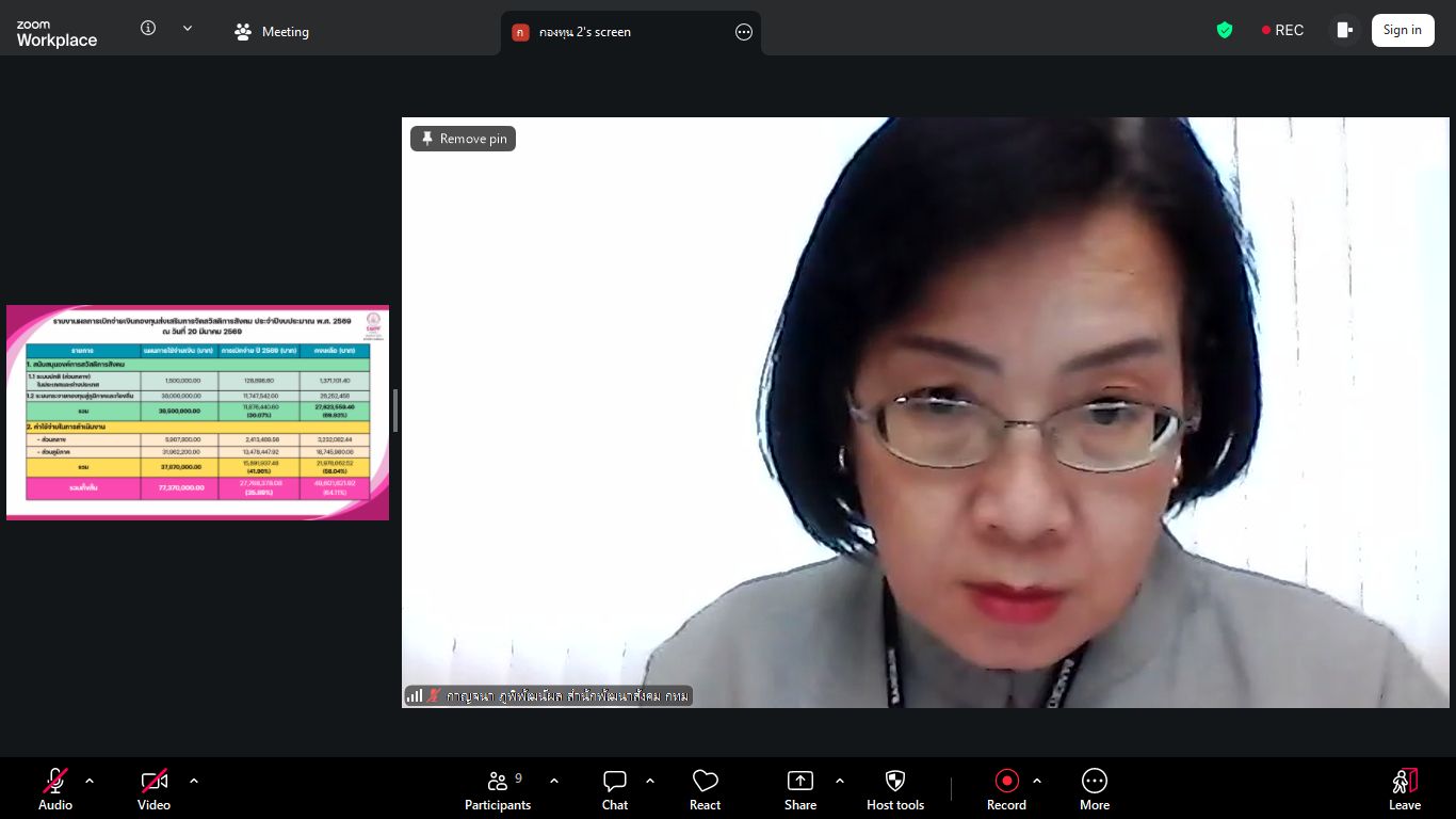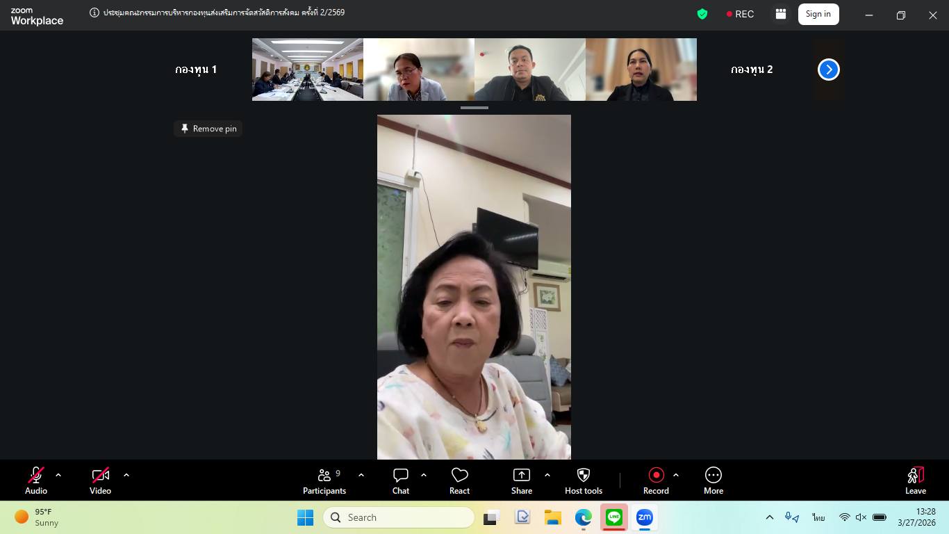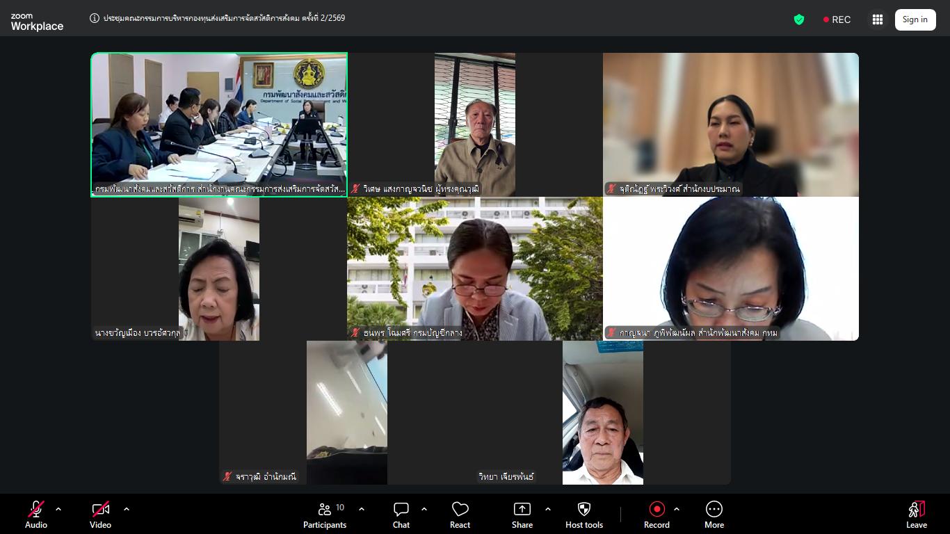 วันศุกร์ที่ 27 มีนาคม พ.ศ. 2569 เวลา 13.30 น. ณ ห้องประชุมชั้น 6 กรมพัฒนาสังคมและสวัสดิการ นางสาวสุนีย์ ศรีสง่าตระกูลเลิศ รองปลัดกระทรวงการพัฒนาสังคมและความมั่นคงของมนุษย์ เป็นประธานการประชุมคณะกรรมการบริหารกองทุนส่งเสริมการจัดสวัสดิการสังคม ครั้งที่ 2/2569 ในรูปแบบผสมผสาน (Hybrid Meeting) โดยนางสาวแรมรุ้ง วรวัธ อธิบดีกรมพัฒนาสังคมและสวัสดิการ มอบหมายให้ นายสุวิชชา วงศ์ไสลย์ ผู้เชี่ยวชาญเฉพาะด้านพัฒนาสังคม ทำหน้าที่รองประธาน ซึ่งมีข้าราชการและเจ้าหน้าที่เข้าร่วมประชุม โดยที่ประชุมร่วมกันพิจารณา ดังนี้